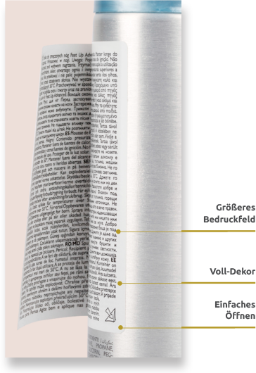 - vollständige Tube: Flip-Top-Verschluss: breite Farbenauswahl, unterschiedliche Formen, Sleeve-Sicherung, Flip-Tops mit Tamper-Evidence-Sicherung